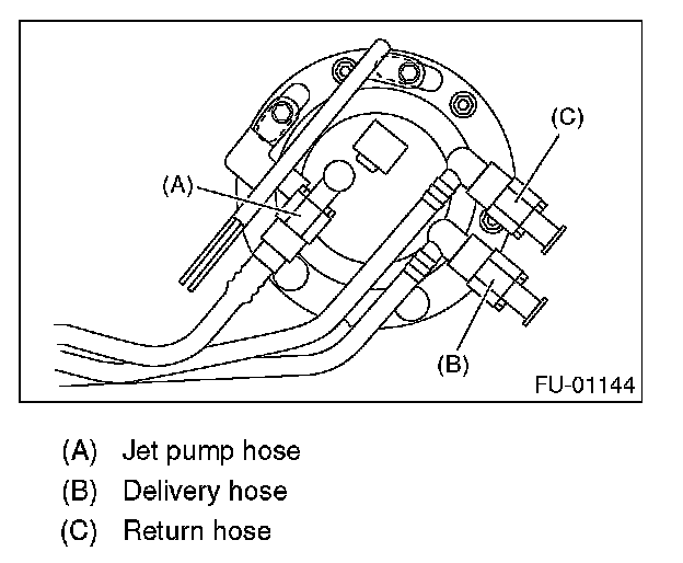 5. Disconnect the quick connector and then disconnect the fuel deliver hose, return hose and jet pump hose.
