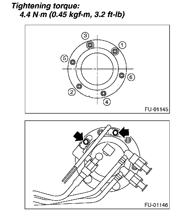 6. Remove the nuts and bolts which install the fuel sub level sensor on fuel tank.