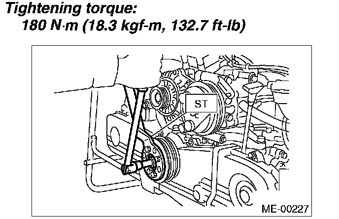 Tighten the bolts temporarily with tightening torque of 44 Nm (4.5 kgf-m, 33 ft. lbs.).