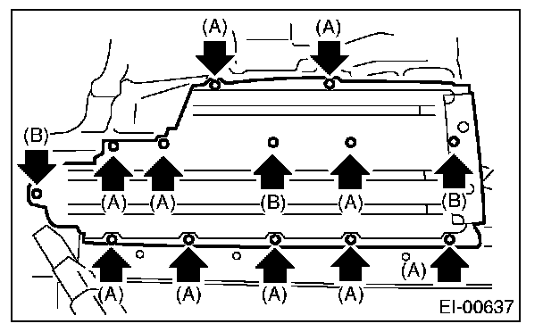 2. Remove the push turn clips (A) and bolts (B), and remove the floor under protector.