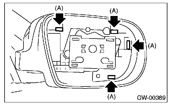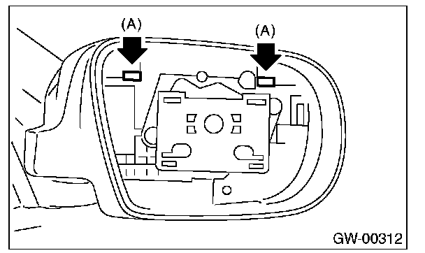2. Press-in the clips (A) from inside of door mirror.