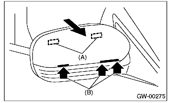 2. Press-in the upper side clips (A) from inside of door mirror.