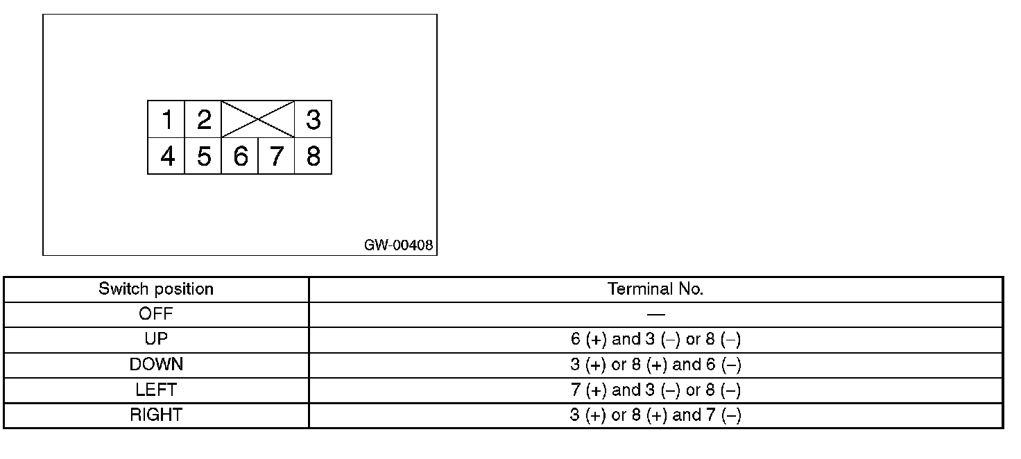Check that the rearview mirror moves properly when the battery voltage is applied to terminals.