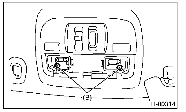 2. Remove the lens (A) and spot map light mounting screws (B).