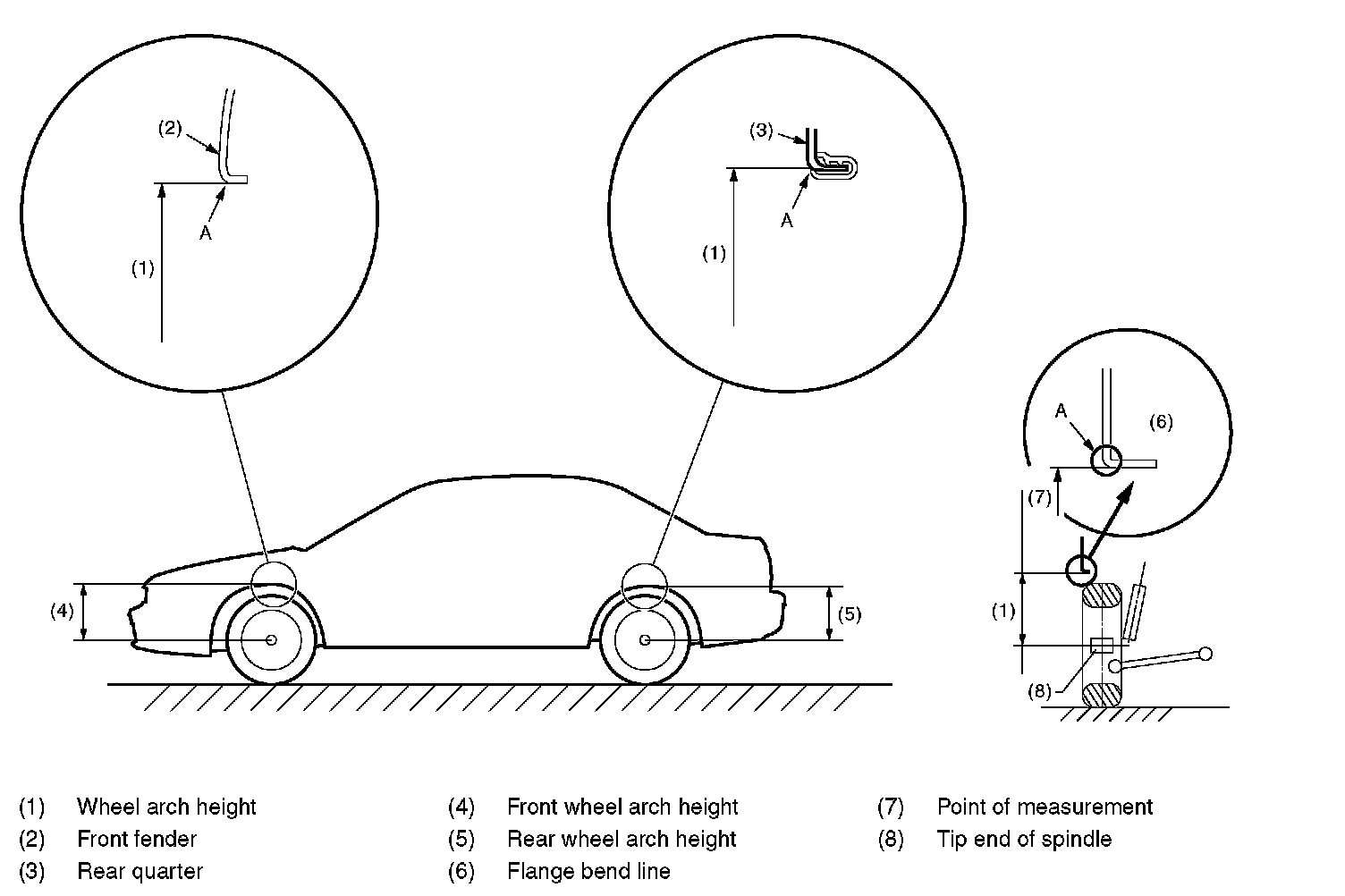 4. Suspend a thread from wheel arch (point A in the figure below) to determine the point directly above the center of wheel.