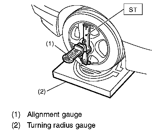 2. Set the ST into the center of wheel, and then set the wheel alignment gauge.