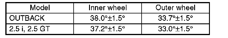 2. While depressing the brake pedal, turn the steering wheel fully to the left and right. With the steering wheel held at each fully turned position, measure both the inner and outer wheel steering angle.