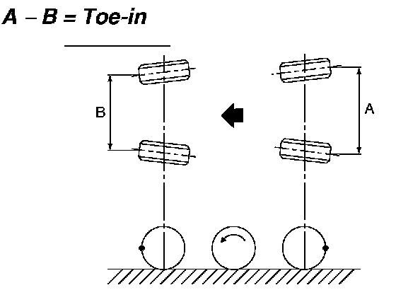 4. Measure the distance B between the left and right marks. Detect toe-in by the following equation: