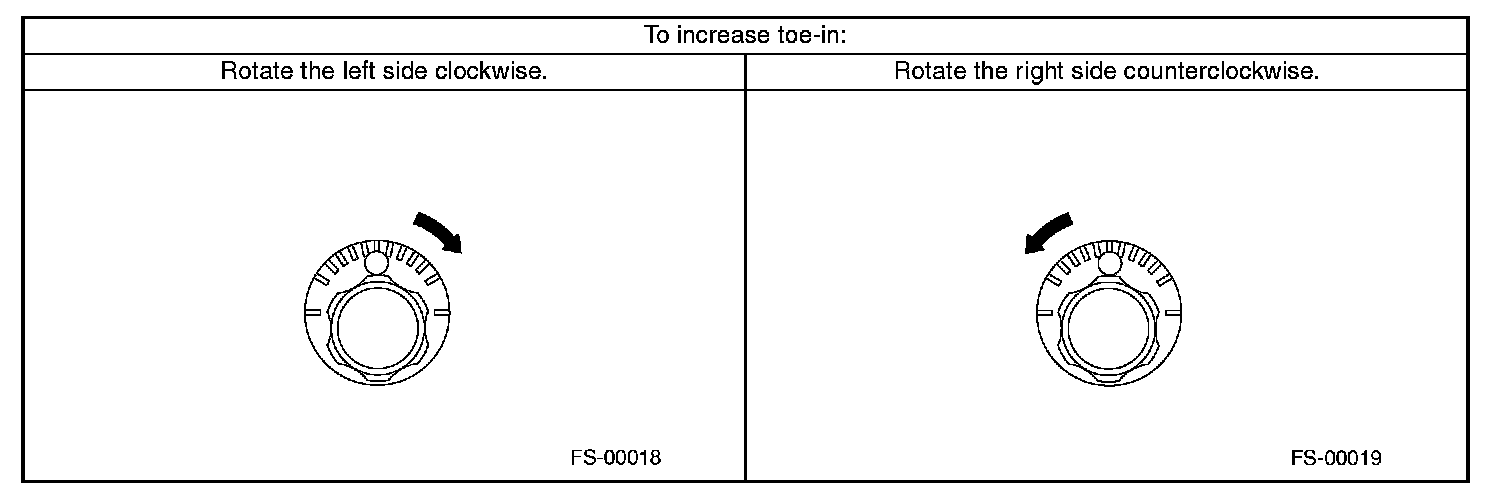 2. When one rear wheel is adjusted in a toe-in direction, adjust the other rear wheel equally in toe-out direction, in order to make the thrust angle adjustment.