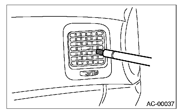 11. Turn the ignition key to ON position, and run the blower at high speed for approx. 1 minute. Stop the blower to check the ventilation grille on the instrument panel. While moving the tester closer to the grille, run the blower for 1 or 2 seconds, then stop it. Check the grille at that point for at least 10 seconds.