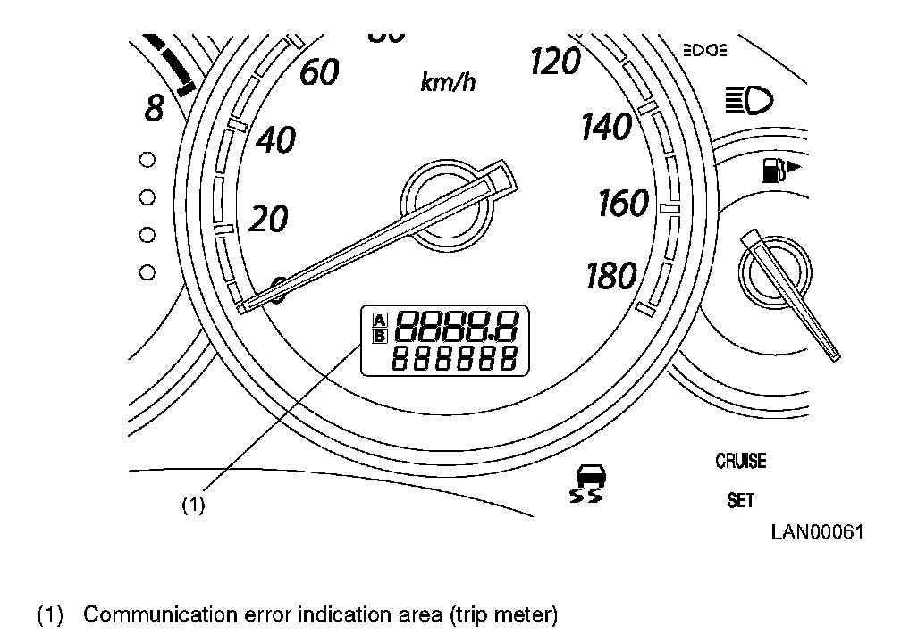 - If a fault occurs in the body integrated unit or LAN system (in any unit or the communication circuit), a communication error indication is given at the trip information display area on the combination meter.