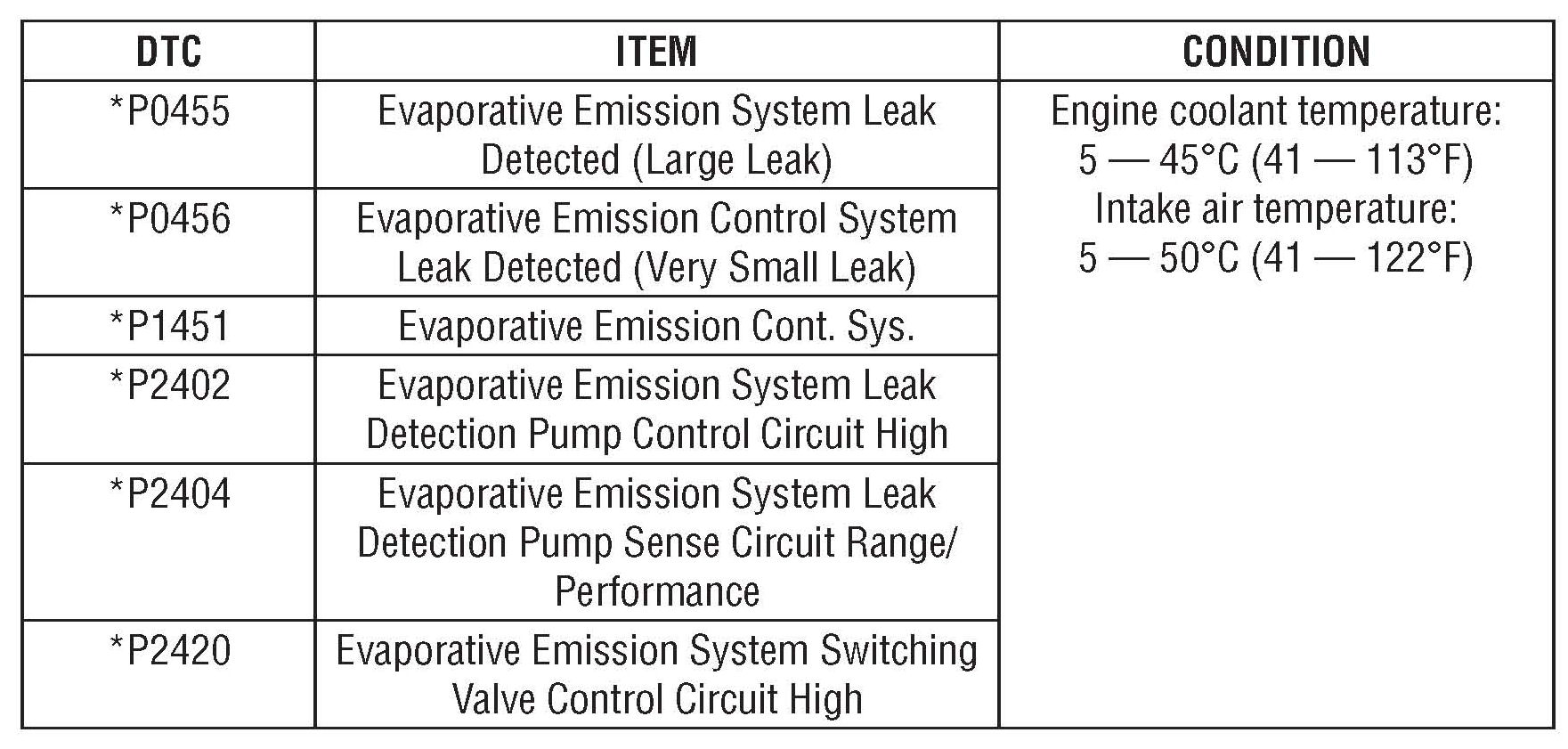 ^ Do not refuel gas immediately before performing DRIVE CYCLE I. There will be a large amount of evaporating gas immediately after refuel, which may cause a less accurate diagnostic performance.