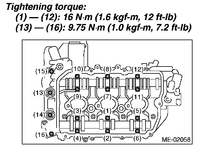 Tighten the rocker cover bolts in the numerical order as shown in the figure.