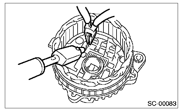 CAUTION: Do not allow a 180 - 270 W soldering iron to contact the terminals for more than 5 seconds at once because the rectifier cannot withstand so much heat.