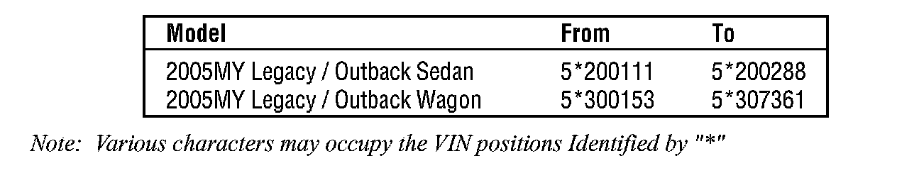 Potentially affected vehicles are identified in the VIN range chart. Not all vehicles within the VIN range are affected. Prior to performing repairs, confirm coverage for potentially affected vehicles by using the Vehicle Coverage Inquiry in the Dealer Communication System (DCS).