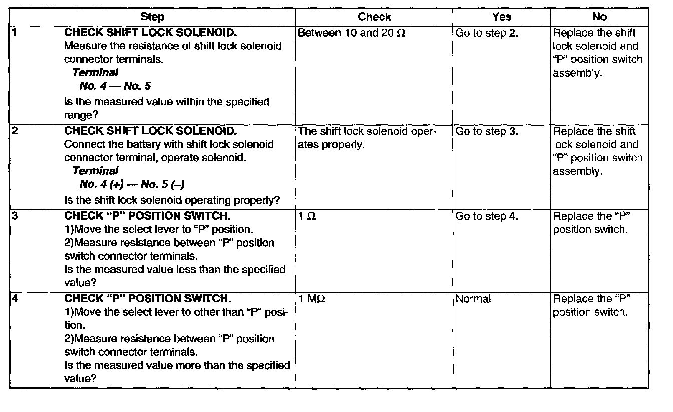 AT Shift Lock Solenoid and "P" Position Switch