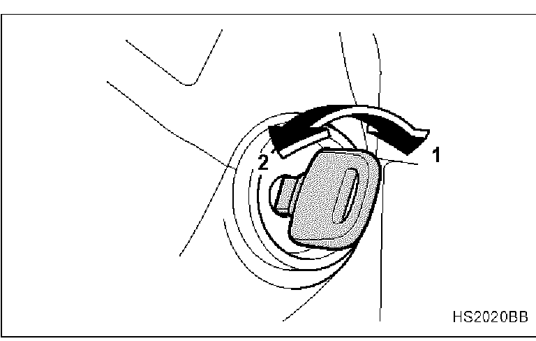 4. Place the ignition key into the ignition switch and cycle the switch from LOCK to ON ten times within 15 seconds. Be sure to stop at the LOCK position. The horn will sound once to indicate that you are in the transmitter programming mode.