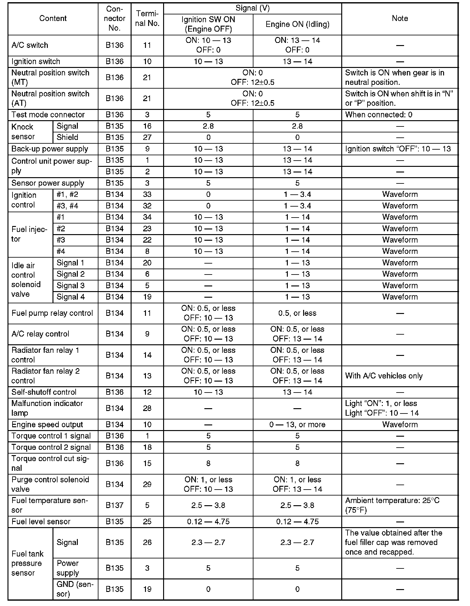 Engine Control Module (ECM) I/O Signal (Part 3):
