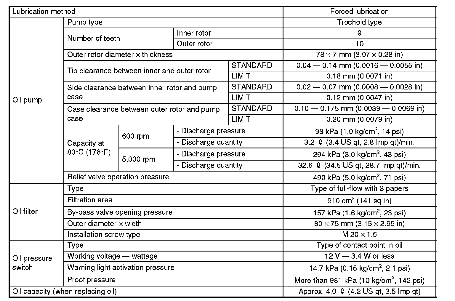 NOTE: If vehicle is used in desert areas with very high temperatures or for other heavy duty applications, the following viscosity oils may be used: ILSAC classification: GF-3 or API classification: SL SAP Viscosity No.: 30, 40, 10W-50, 20W-40, 20W50.