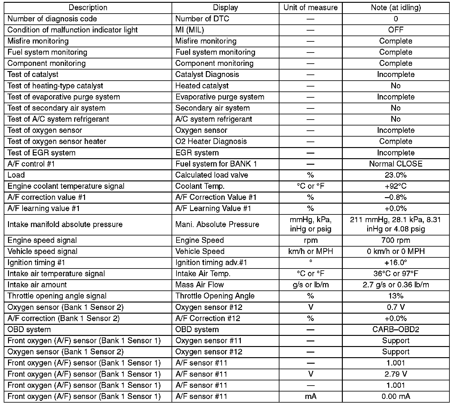 5. READ CURRENT DATA FOR ENGINE (OBD MODE)