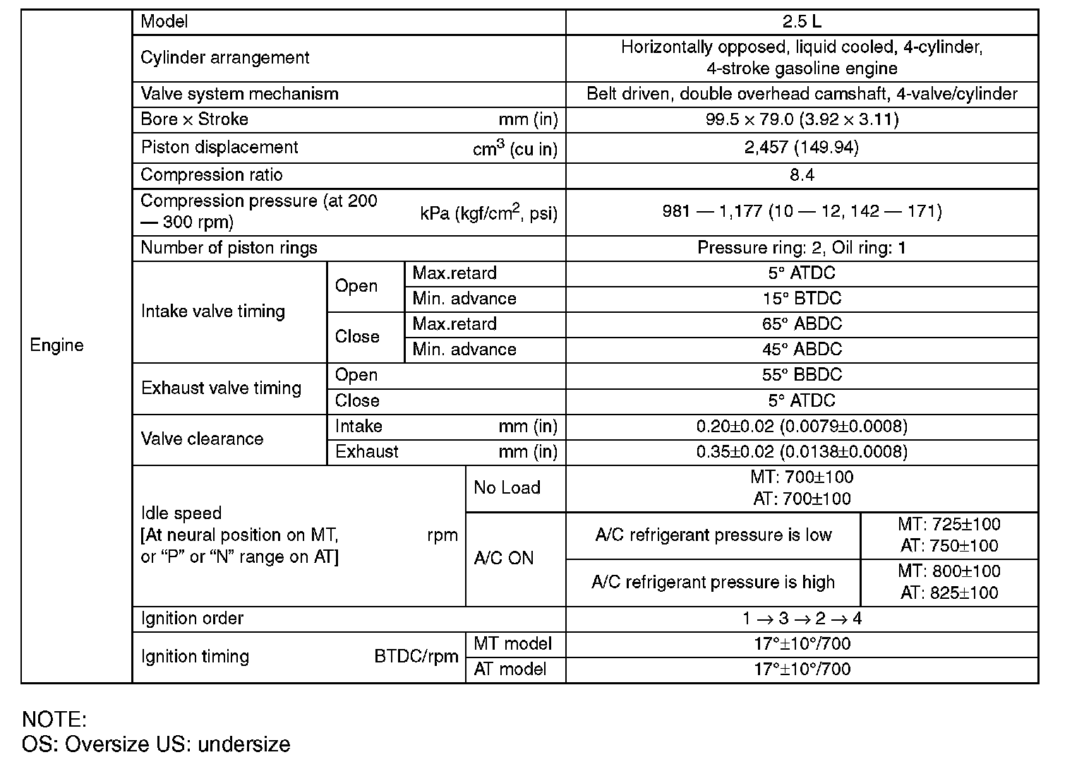 OS: Oversize US: undersize