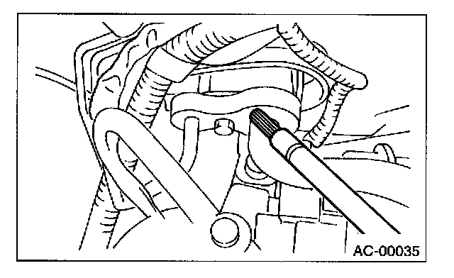 7. Check the compressor shaft seal at the area near the center of compressor clutch pulley. Some shaft seals show a slight amount of leakage about 28 g (1.0 oz) per year. This is not a problem.