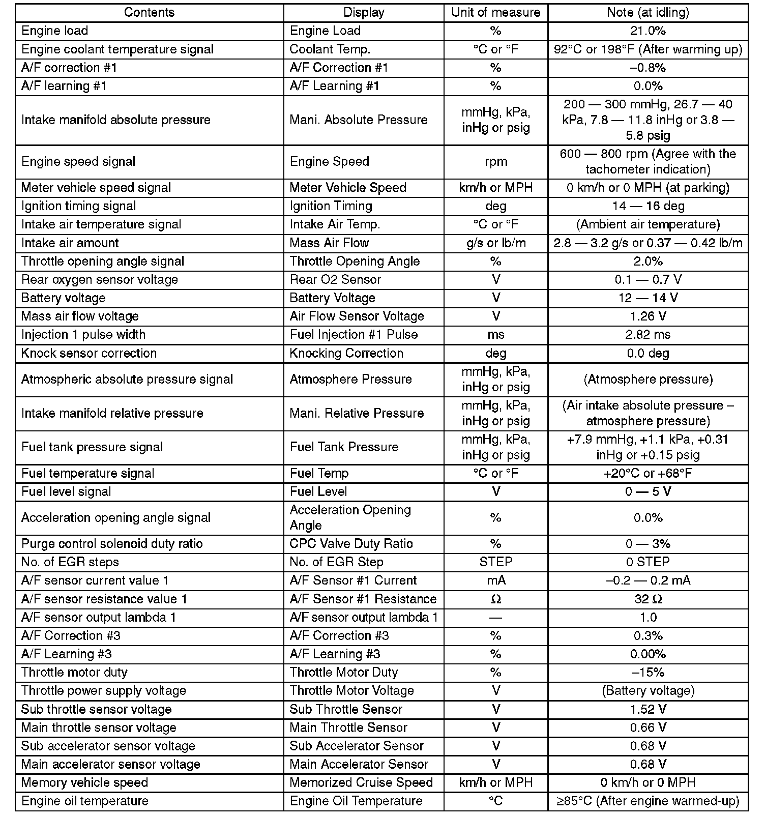 5. READ CURRENT DATA FOR ENGINE (OBD MODE)