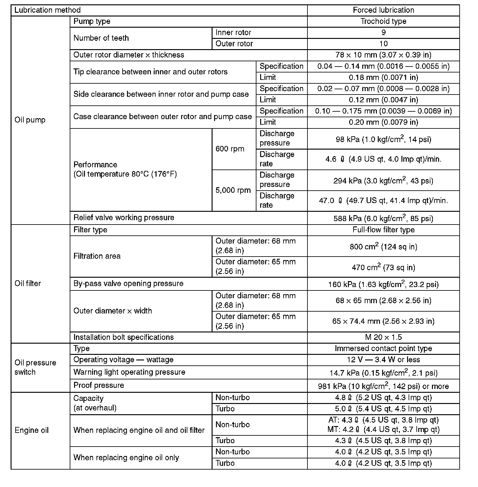 Home >> Subaru >> 2007 >> Forester F4-2.5L SOHC >> Repair and Diagnosis >> Specifications >> Mechanical Specifications >> Engine >> Engine Lubrication >> System Specifications