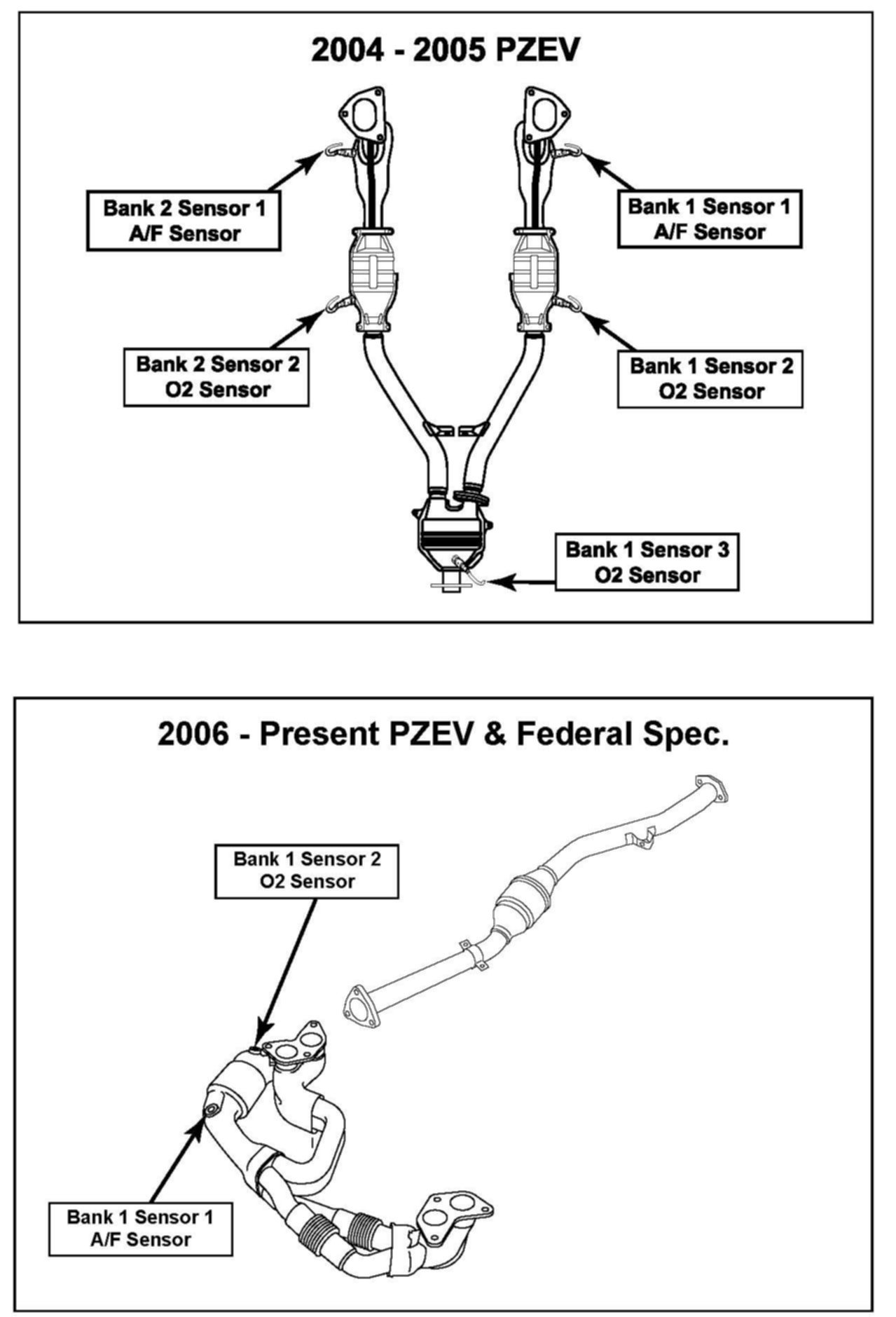 (6) Early PZEV vehicles used an additional O2 sensor behind the rear catalyst and is designated sensor 3.