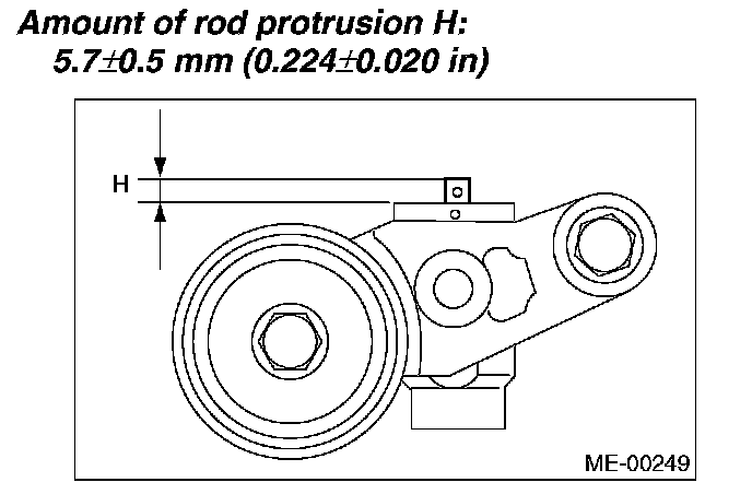 1. Check the mating surfaces of timing belt and contact point of adjuster rod for abnormal wear or scratches. Replace the automatic belt tension adjuster assembly if faulty.