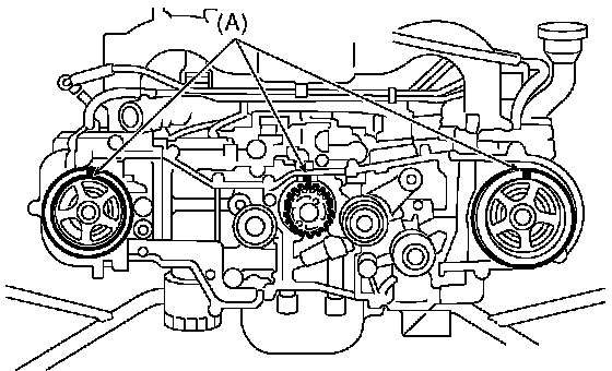 5. If the alignment mark (a) or arrow mark (which indicates rotation direction) on the timing belt has faded away, put new marks on the belt before removing as shown in procedures below.