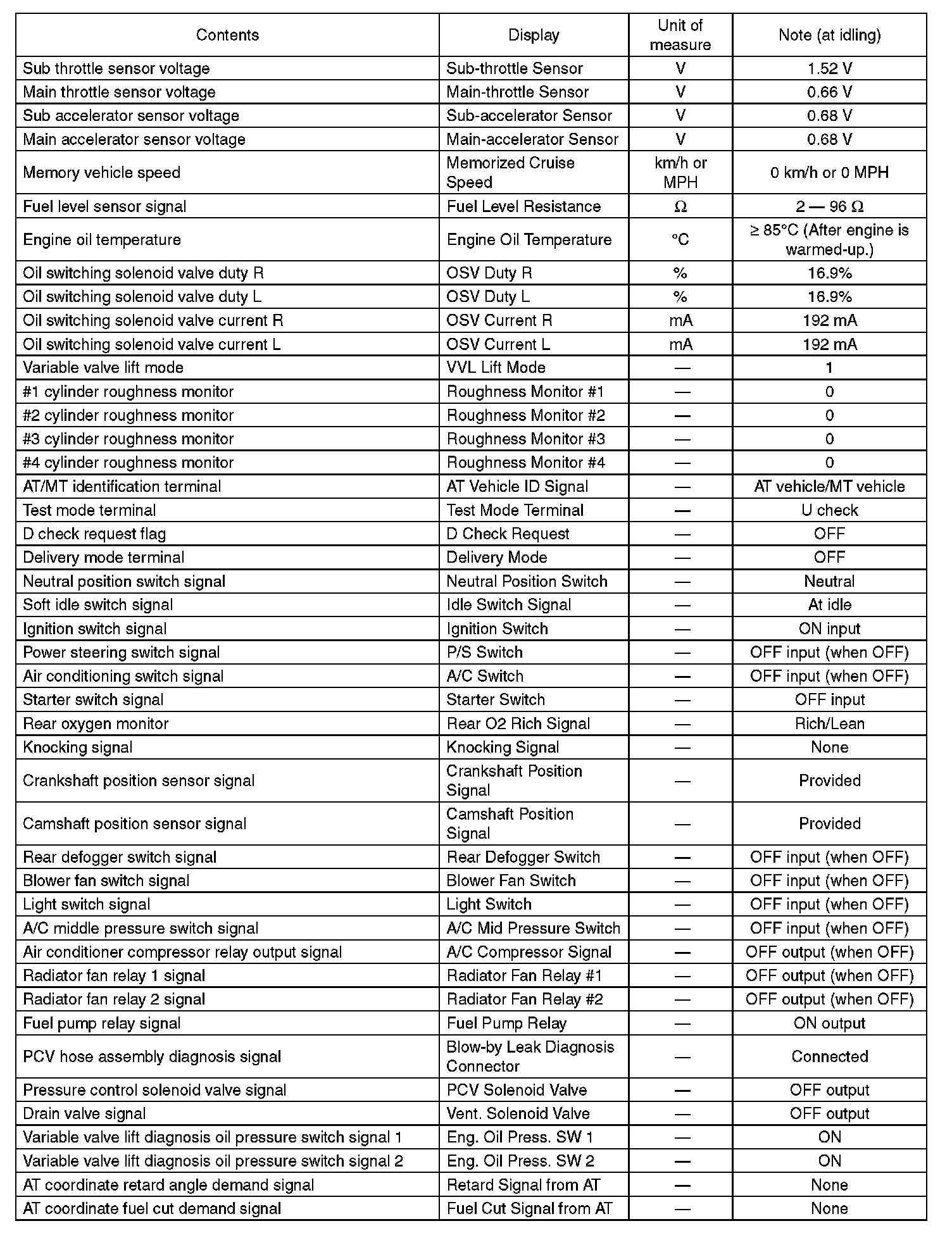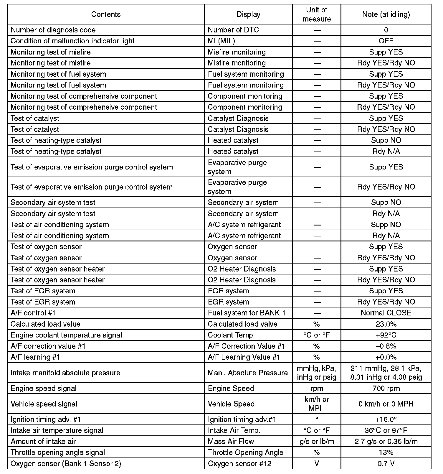 5. READ CURRENT DATA FOR ENGINE (OBD MODE)