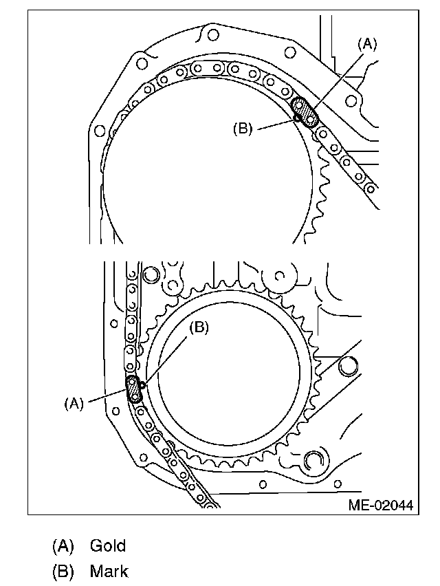 Align the marks of timing chain LH and RH on the idler sprocket (lower).