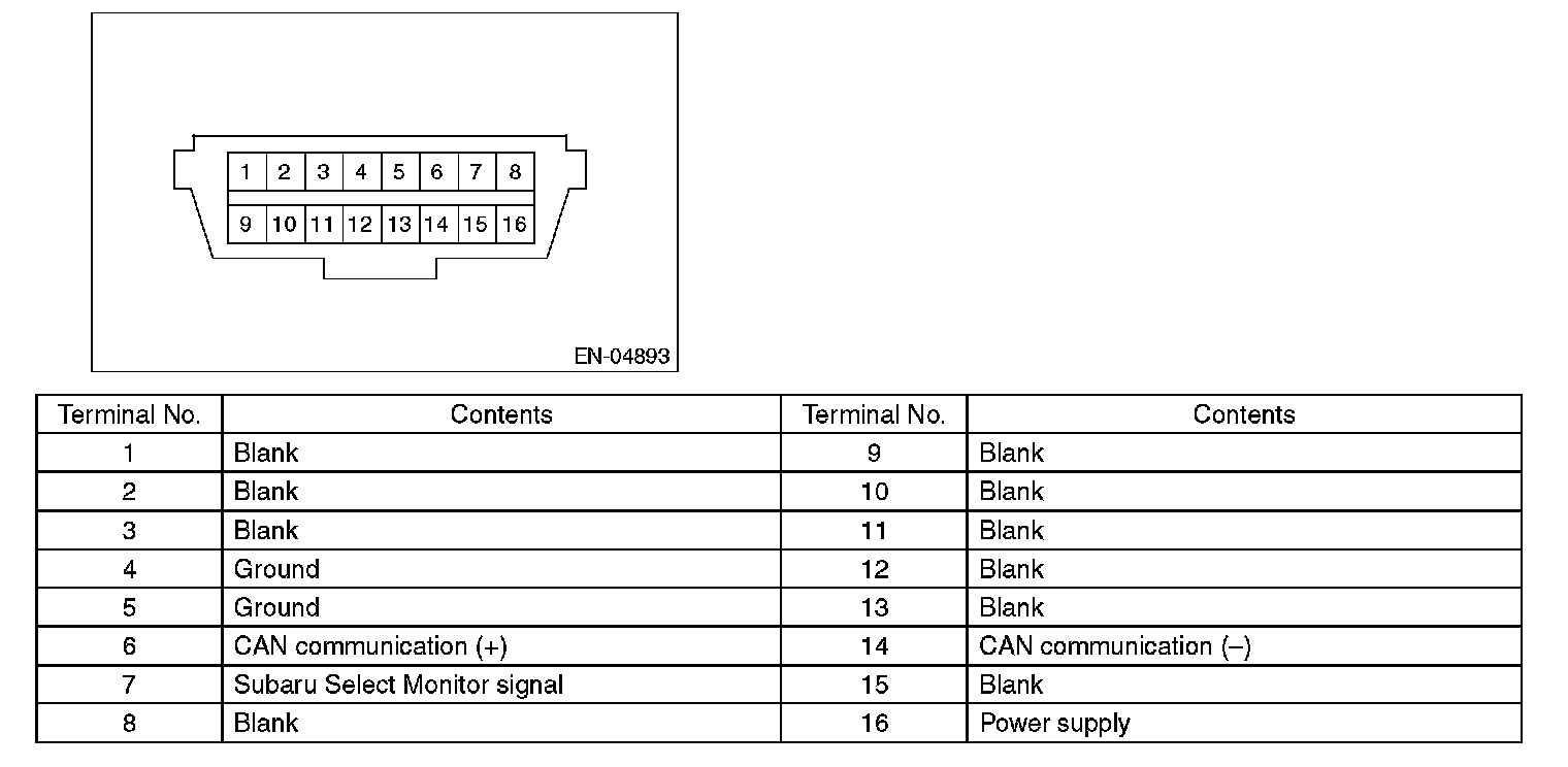 NOTE: This connector is used for Subaru Select Monitor.