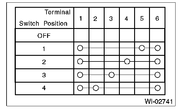 3. The symbol "0-0" indicates that continuity exists between two points or terminals. For example, when a switch position is at "3", continuity exists among terminals 1, 3 and 6, as shown in the table.