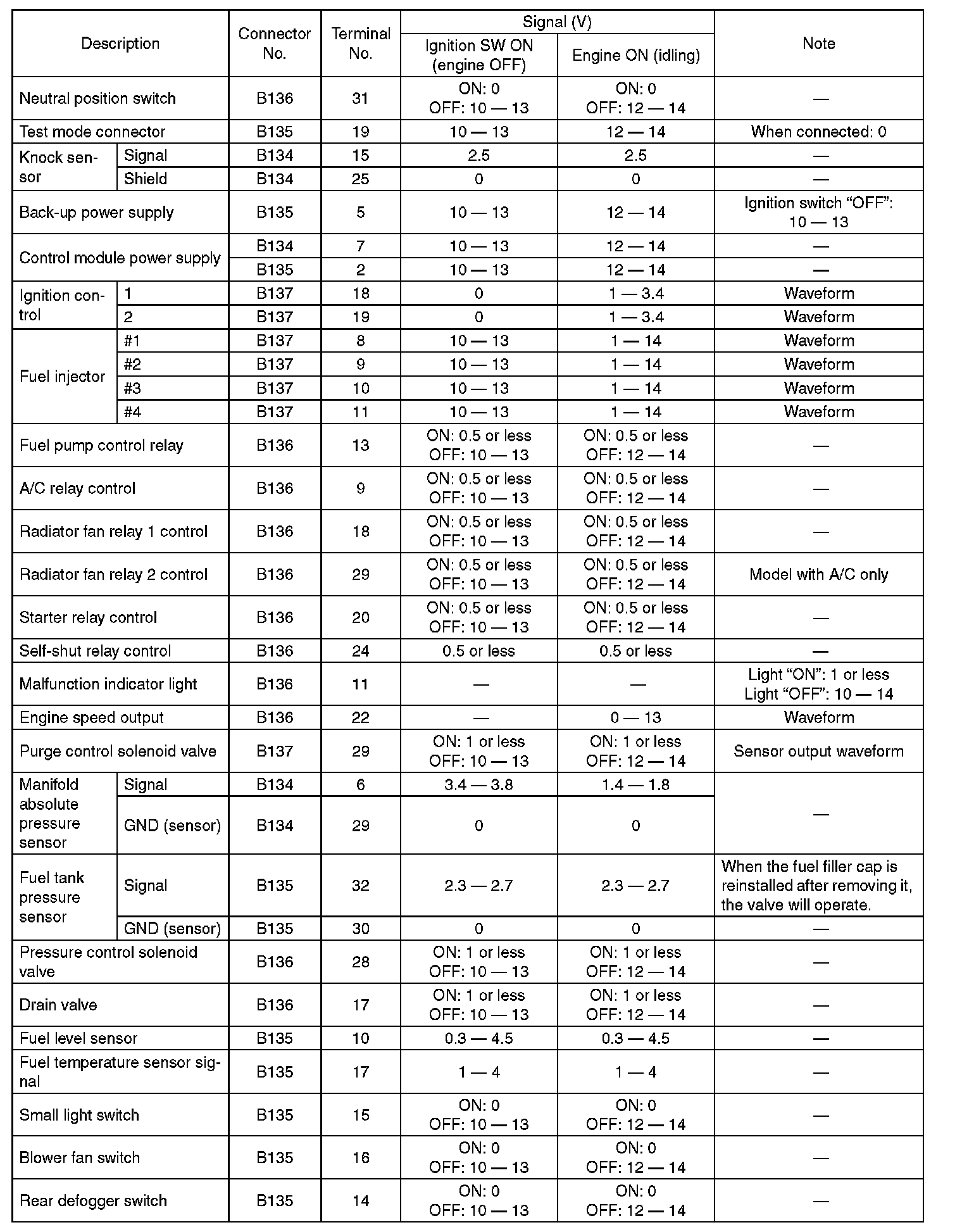 Engine Control Module (ECM) I/O Signal (Part 4):