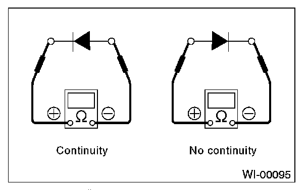 2. Use an ohmmeter to check for diode continuity. When contacting the negative lead to the diode positive side and the positive lead to the negative side, there should be continuity. When contacting the two leads in reverse, there should be no continuity.