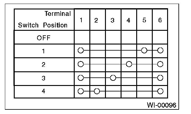 3. The symbol "0--0" indicates that continuity exists between two points or terminals. For example, when a switch position is at 3 , continuity exists among terminals 1, 3 and 6, as shown in the table below.