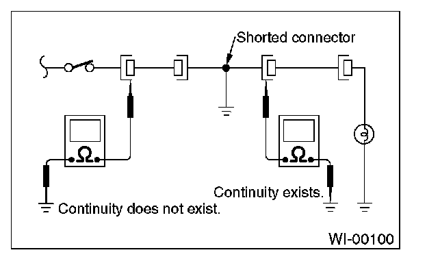 Disconnect all affected connectors, and check continuity between each connector and ground. When the ohmmeter indicates continuity between a particular connector and a ground, that connector is shorted.