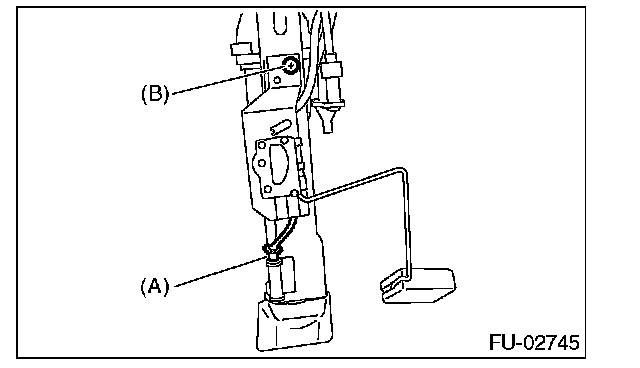 4. Remove the bolt (B) which installs the fuel level sensor on the mounting bracket.