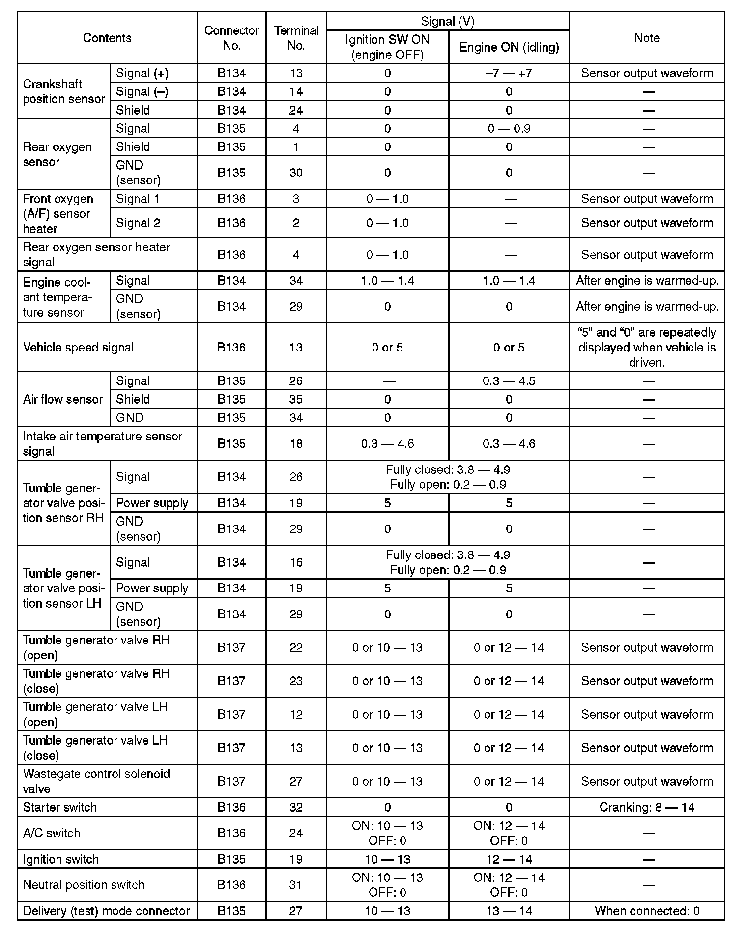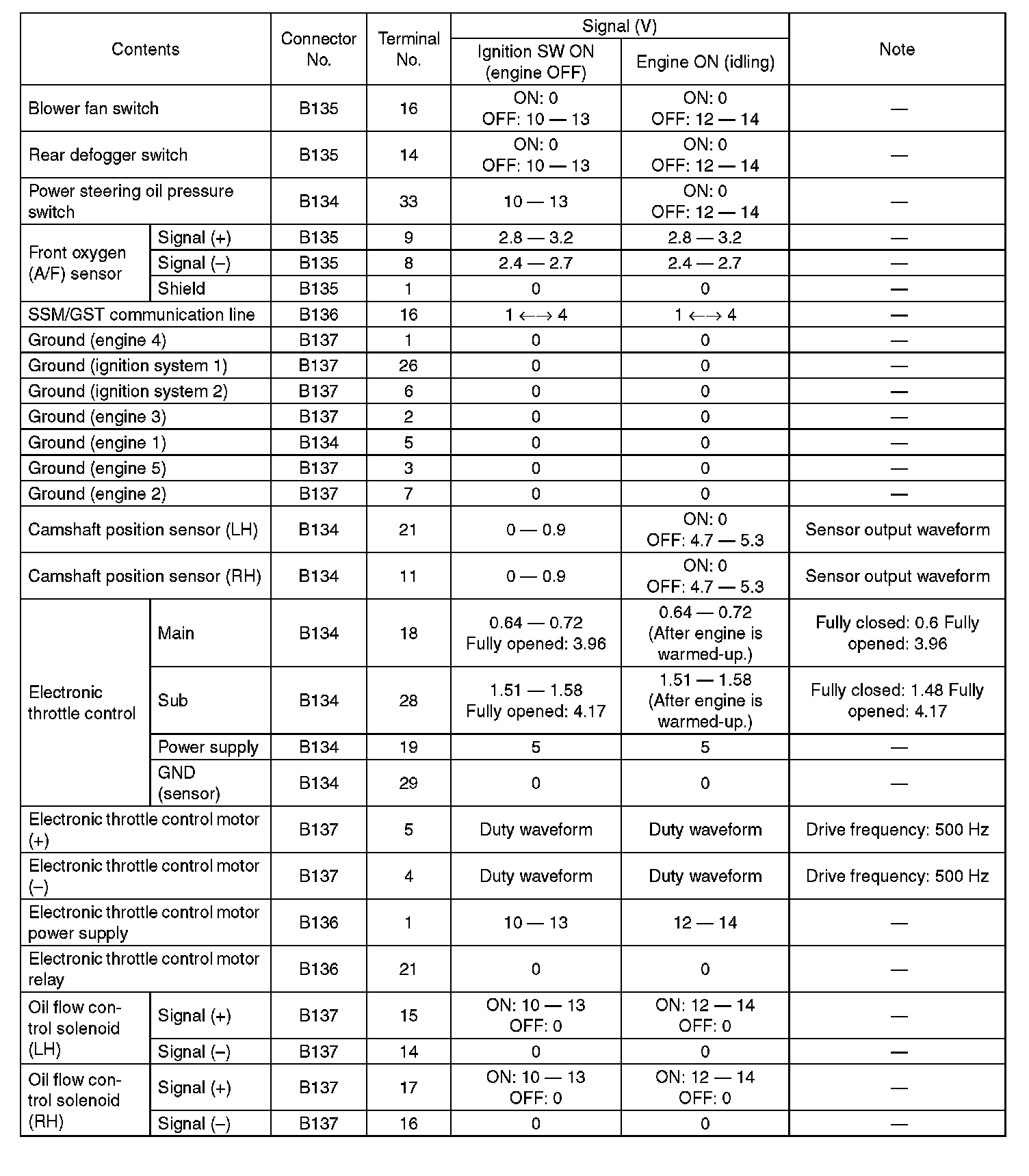 Engine Control Module (ECM) I/O Signal-Electrical Specification (Part 6):