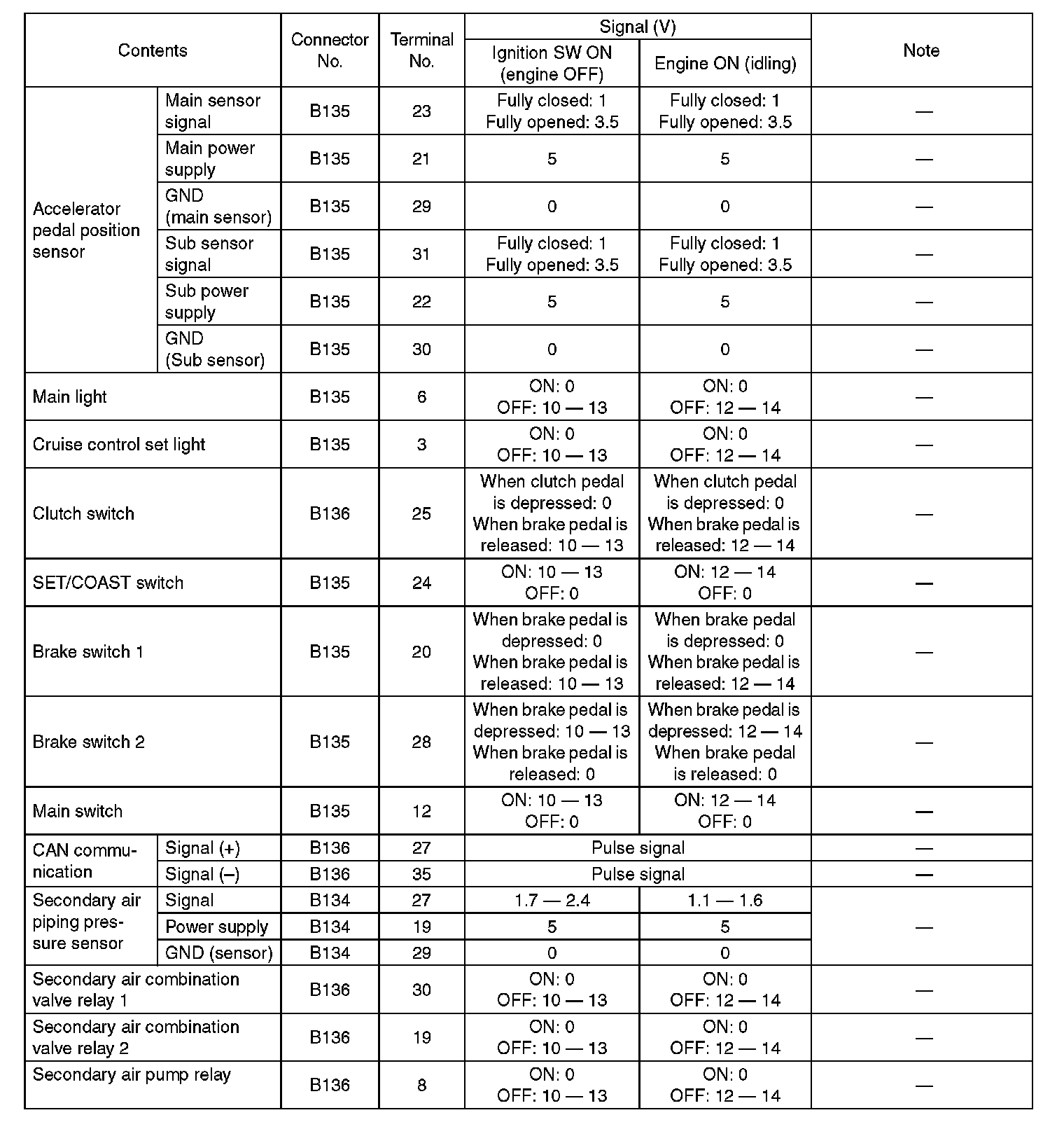 Engine Control Module (ECM) I/O Signal-Electrical Specification (Part 5):