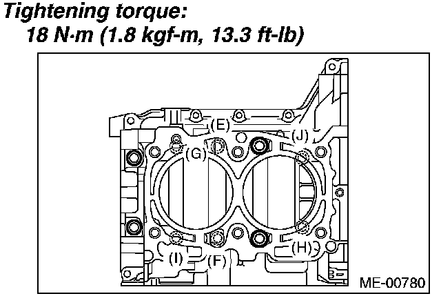 RH side (E - J) in alphabetical sequence 18 N-m (1.8 kgf-m, 13.3 ft-lb)