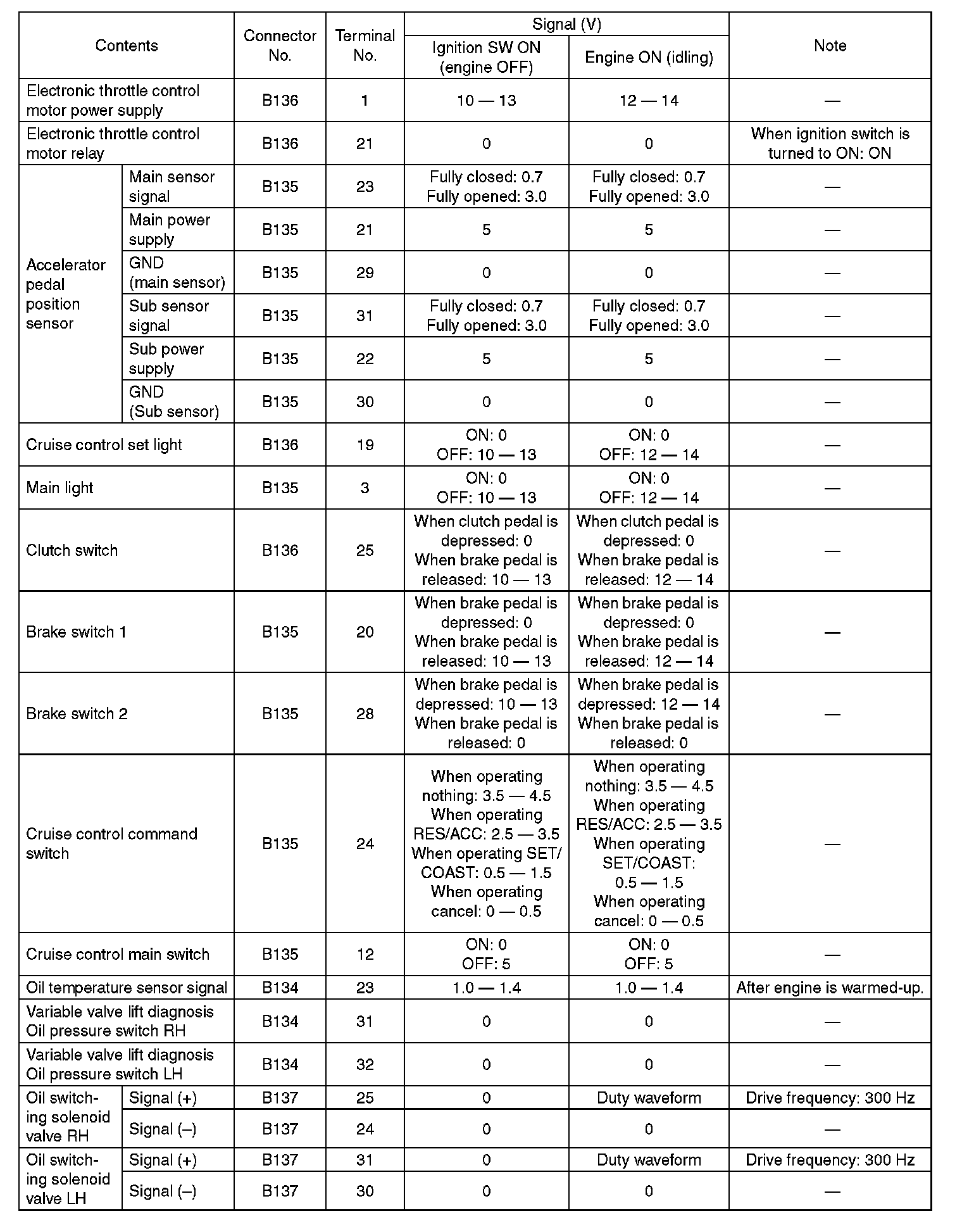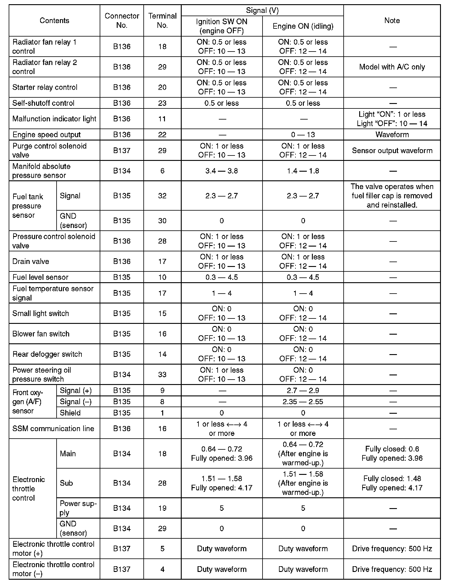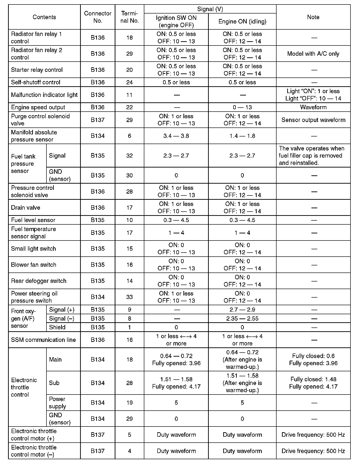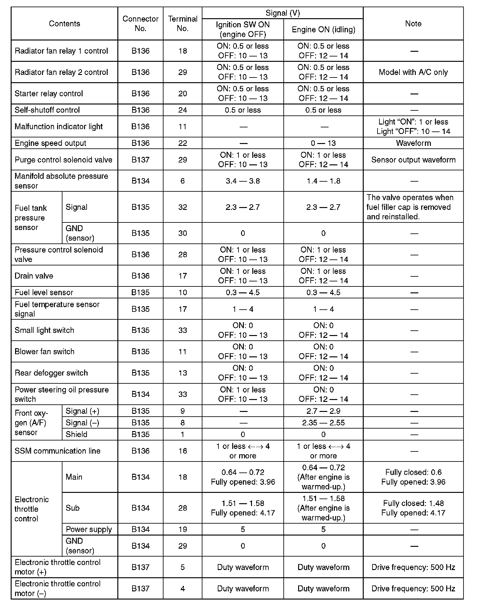 Engine Control Module (ECM) I/O Signal-Electrical Specification: