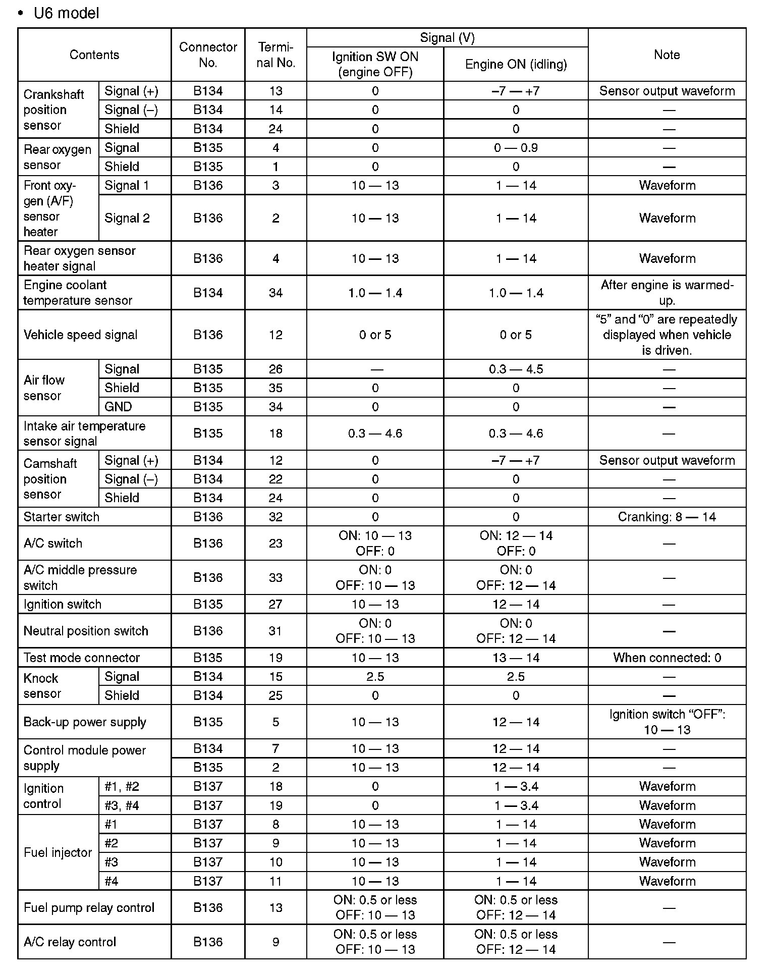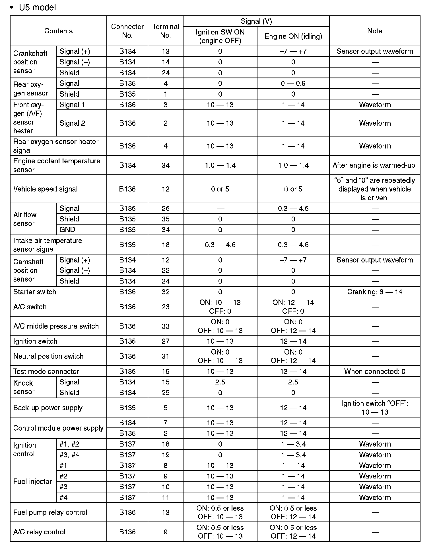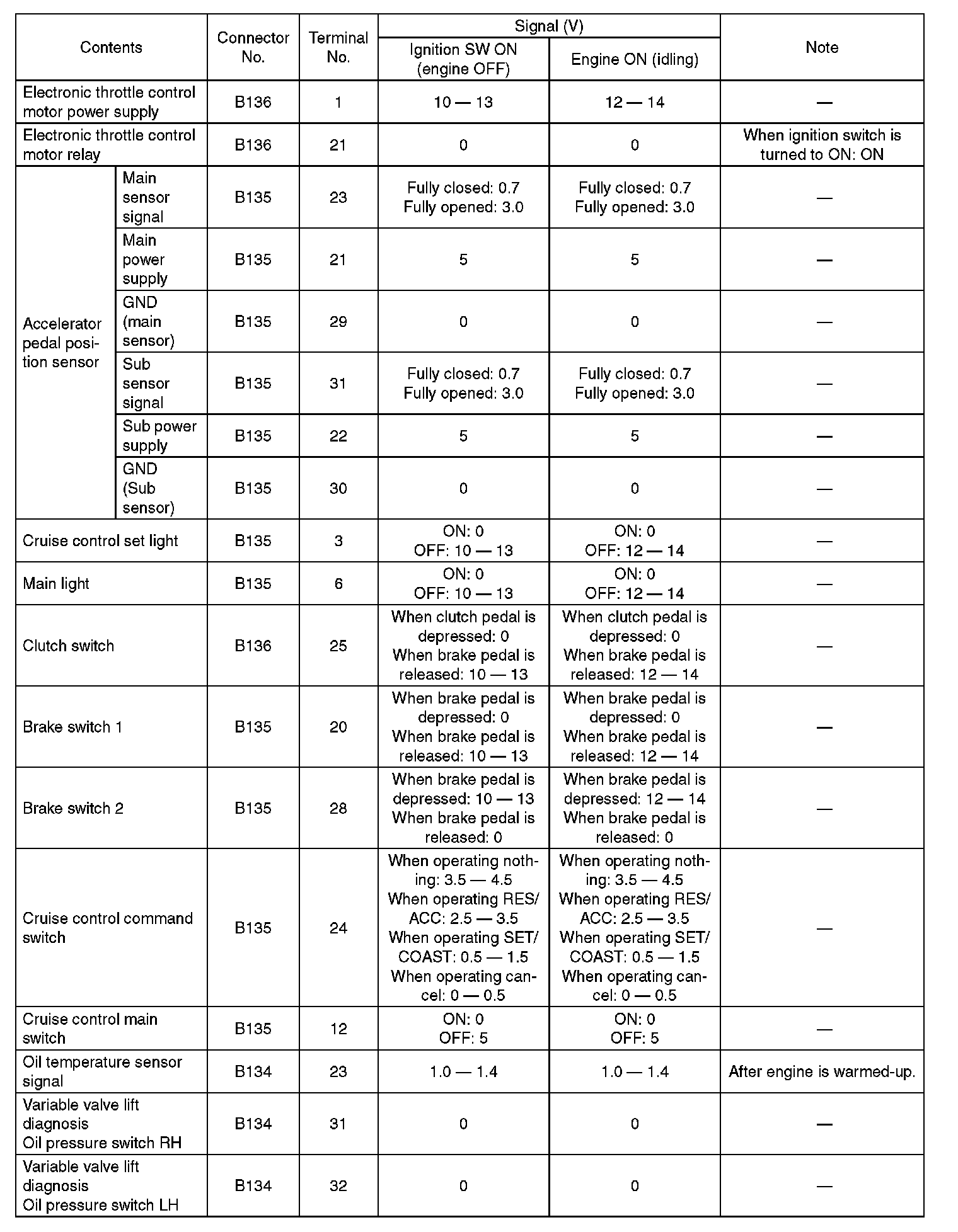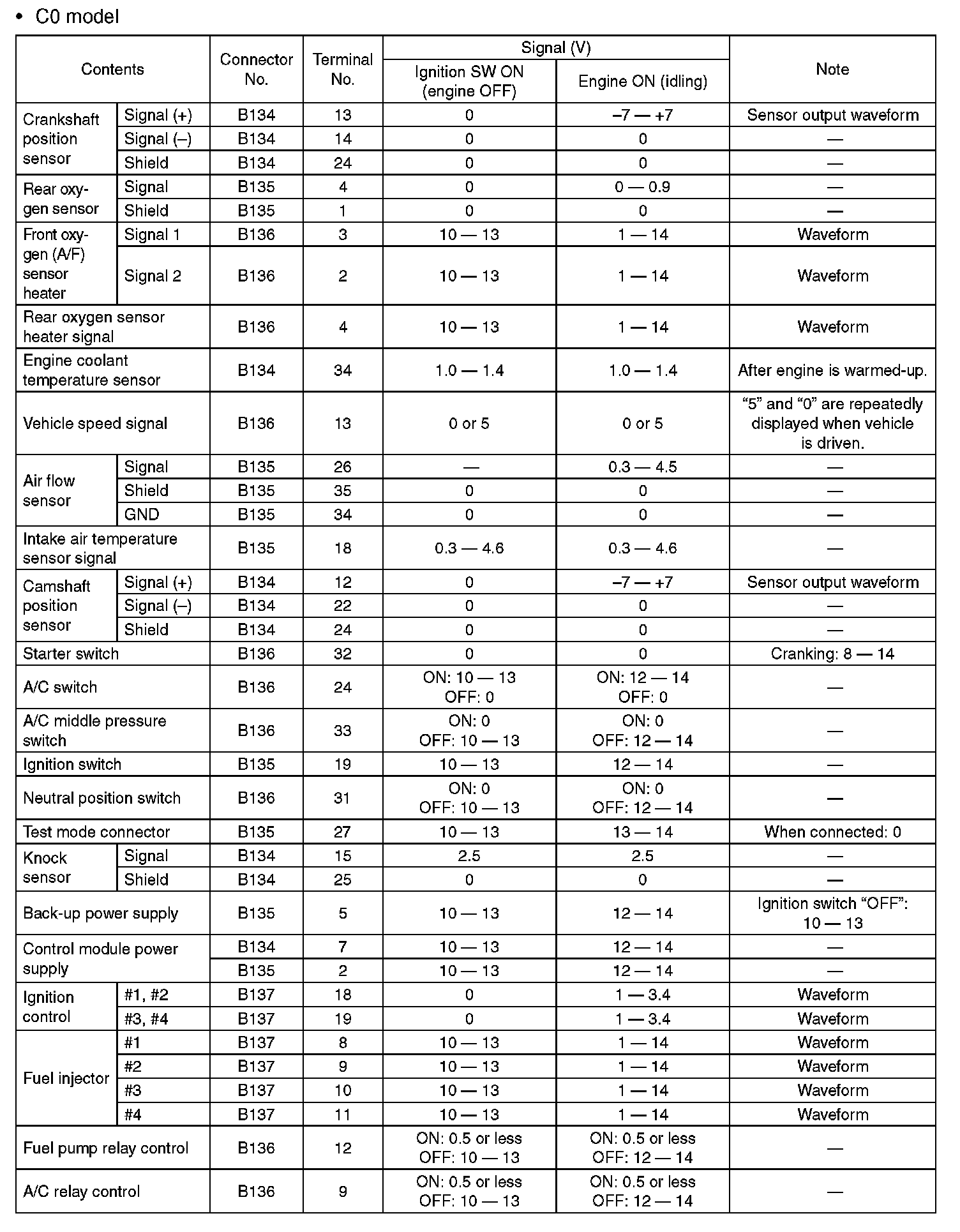 Engine Control Module (ECM) I/O Signal-Electrical Specification: