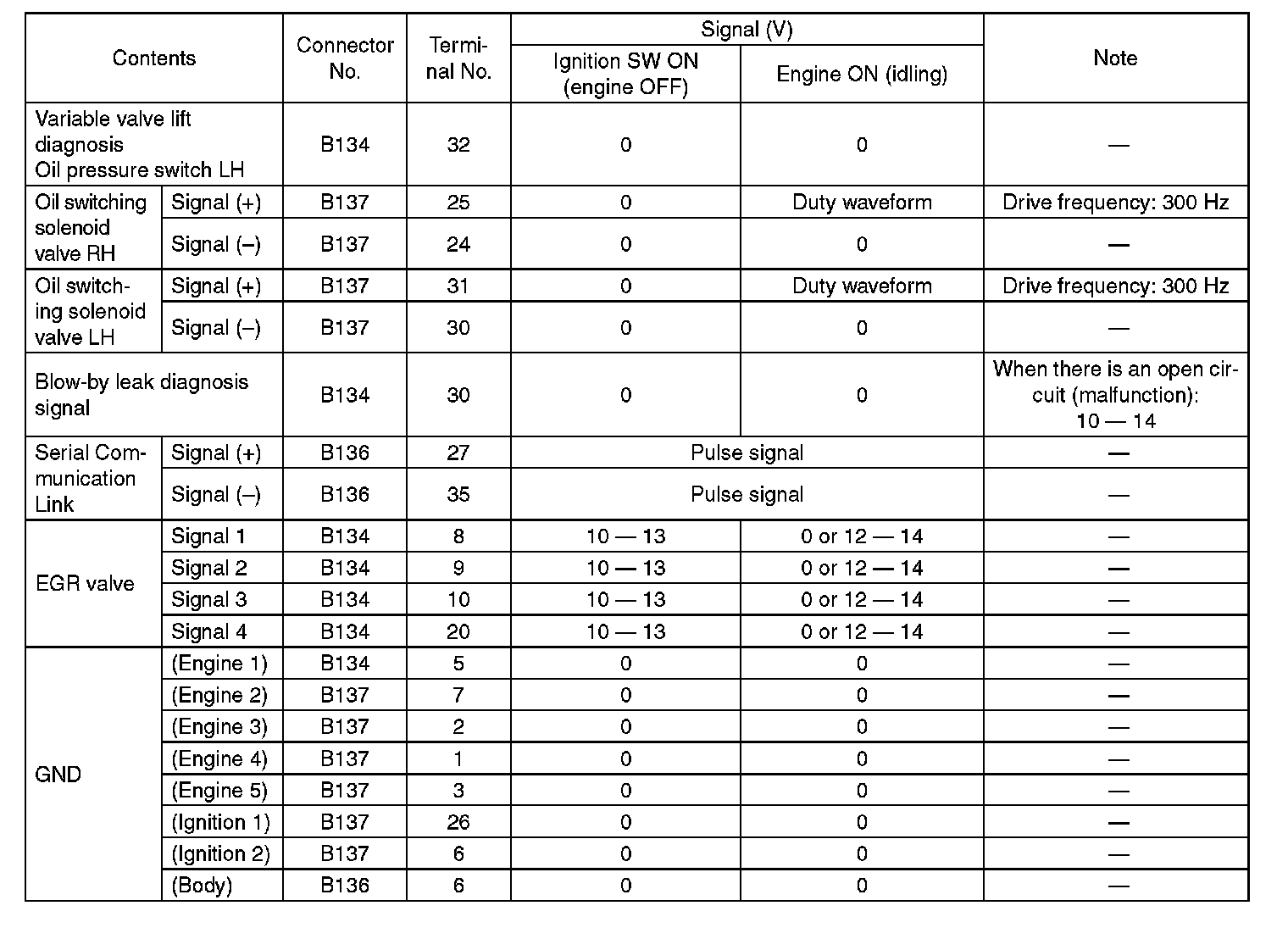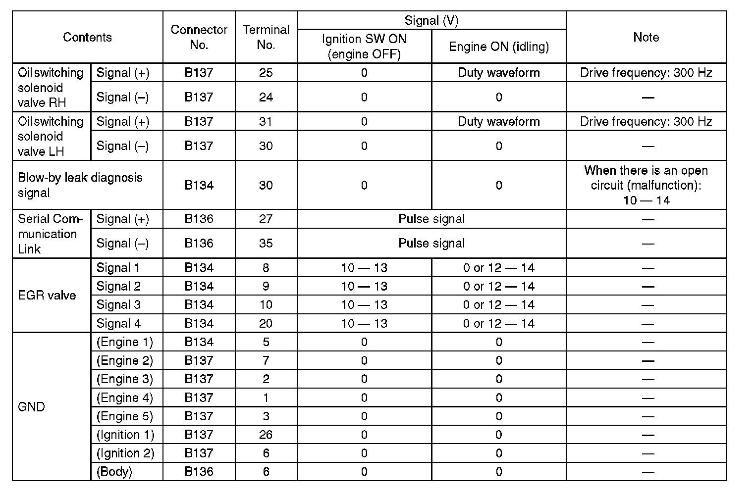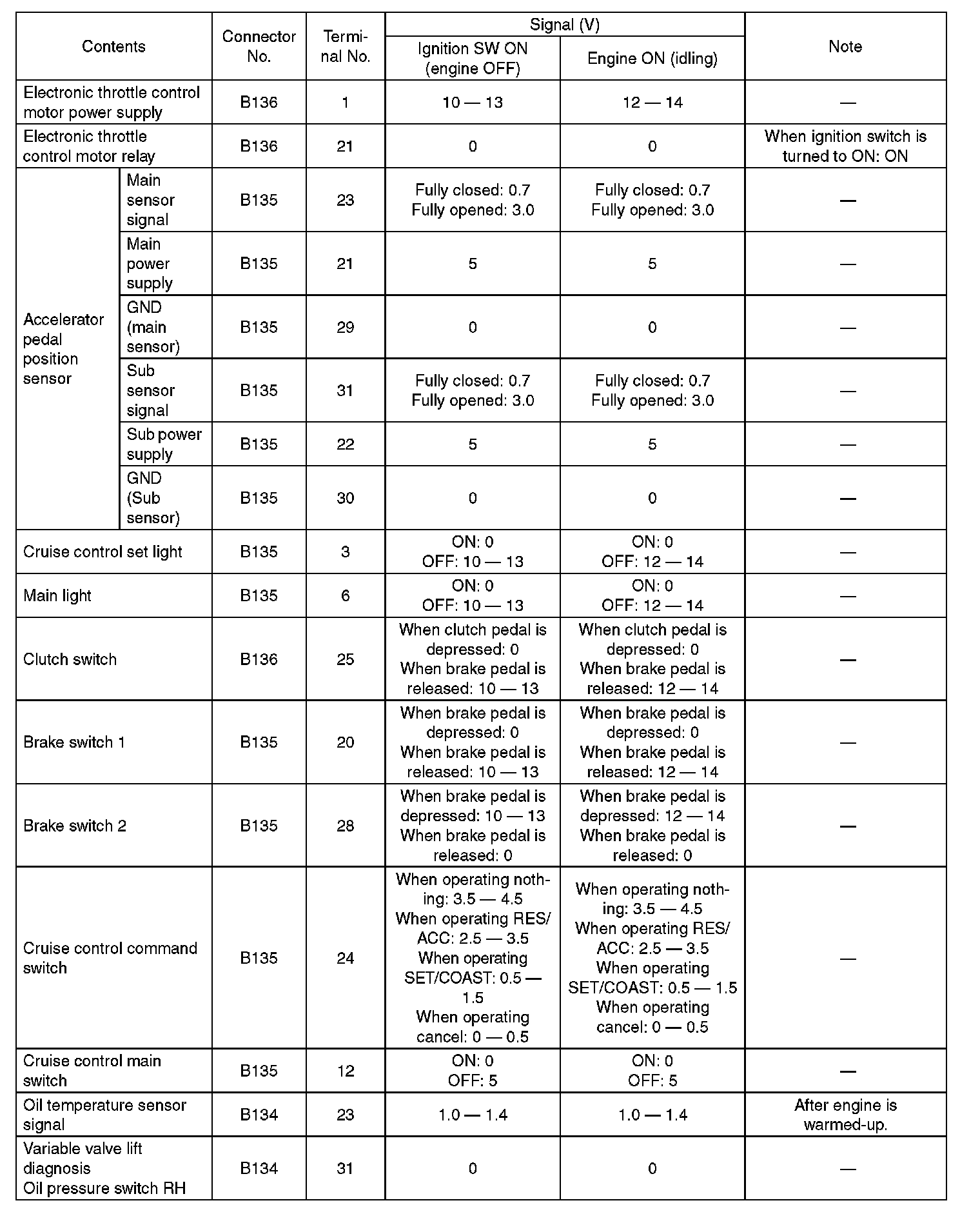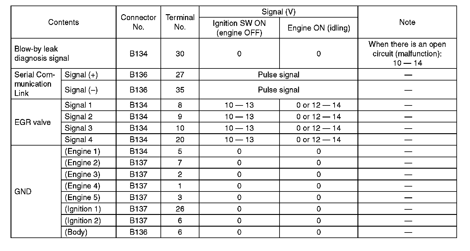 Engine Control Module (ECM) I/O Signal-Electrical Specification: