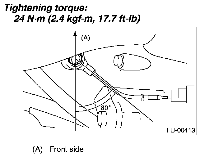NOTE: The portion of the knock sensor cord that is pulled out must be positioned at a 60° angle relative to the engine rear.