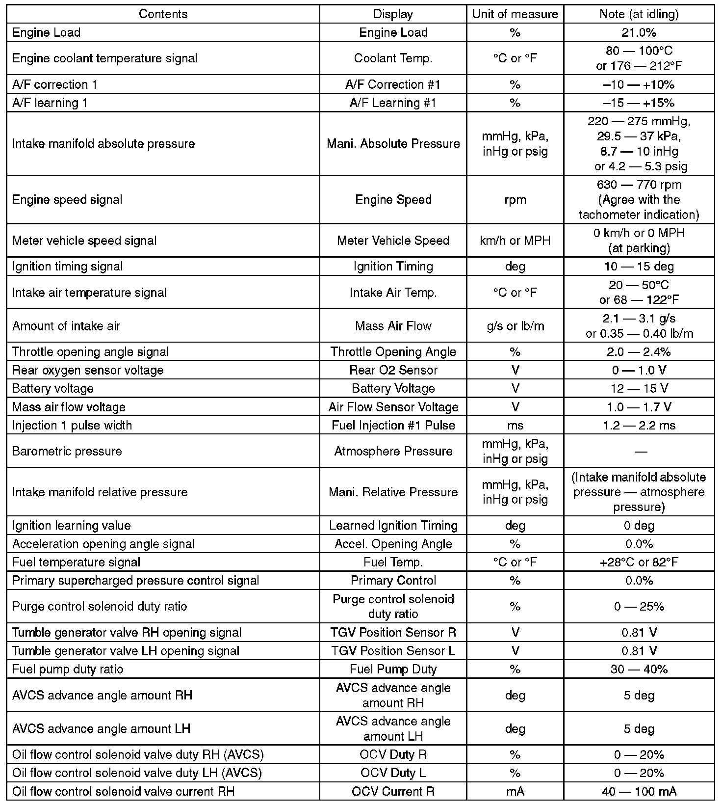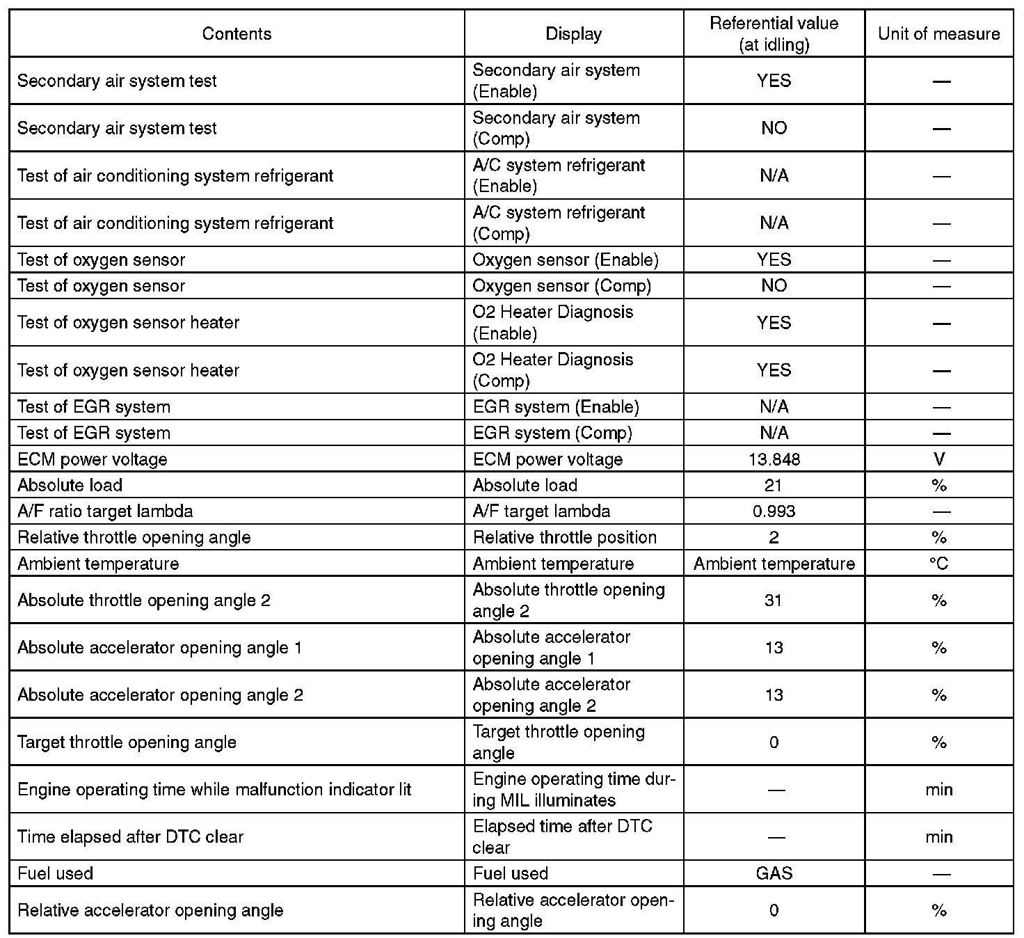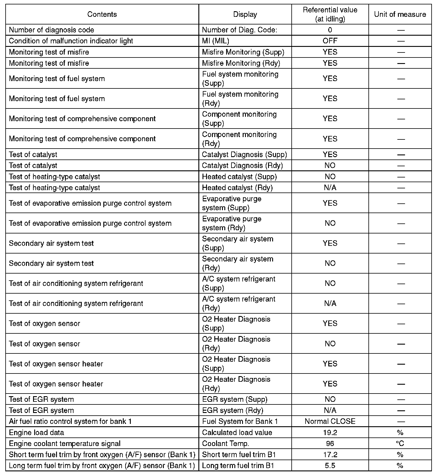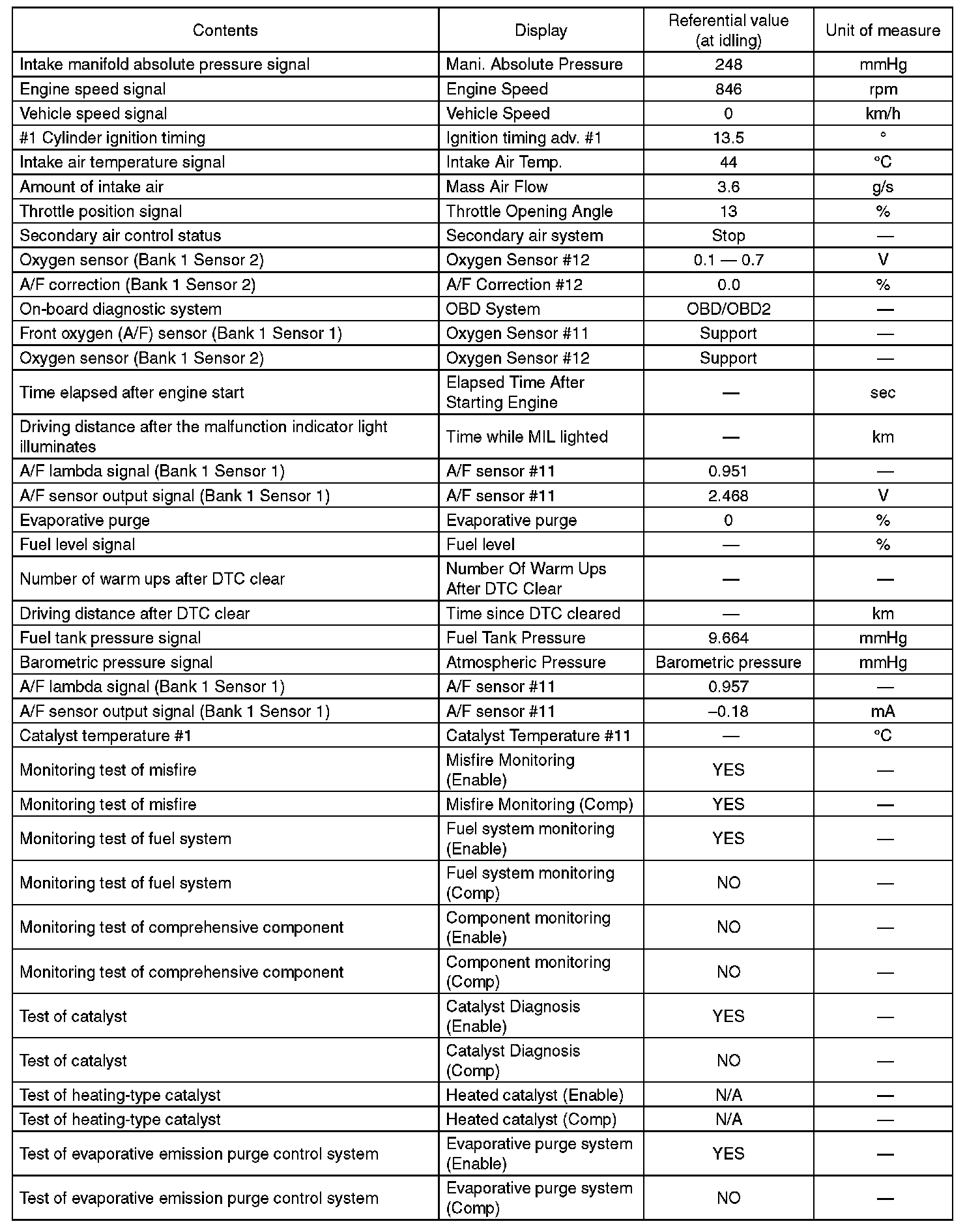 5. READ CURRENT DATA FOR ENGINE (OBD MODE)