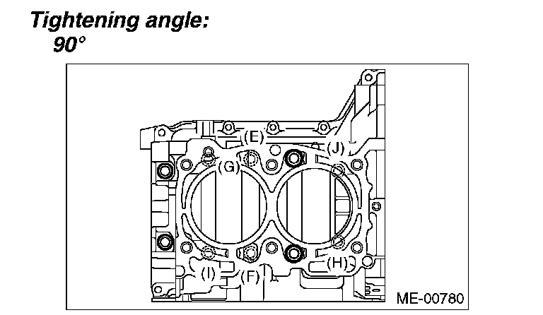 Tighten the RH side cylinder block connecting bolts (E J) further in alphabetical order.