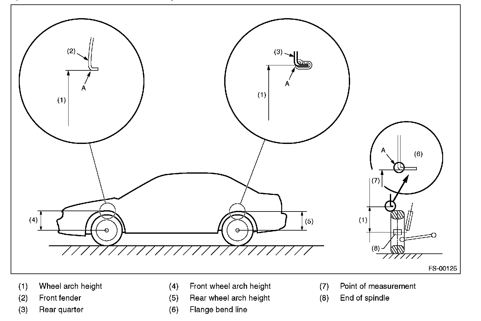 2) Place a mark at the center of both left and right tires, and measure distance "A" between the marks.